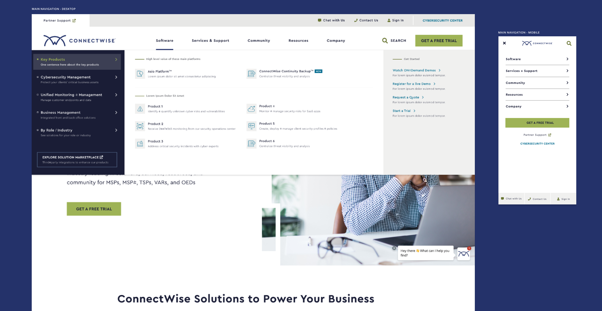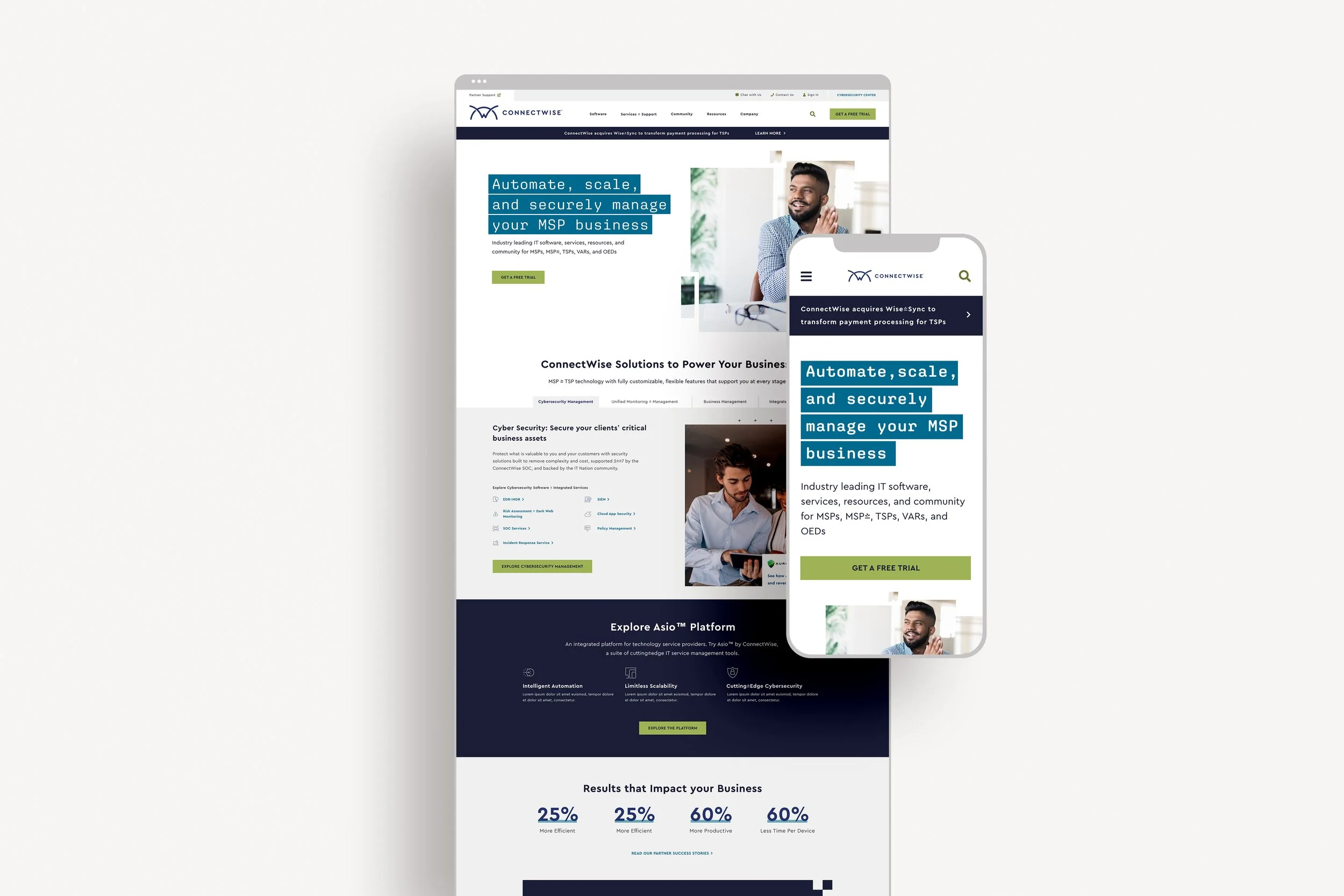 ConnectWise partnered with us in order to strengthen their digital presence and modernize their brand. This was to be executed with a full website redesign including – execution of a new design system, responsive designs, optimized content strategy and a refreshed site taxonomy.