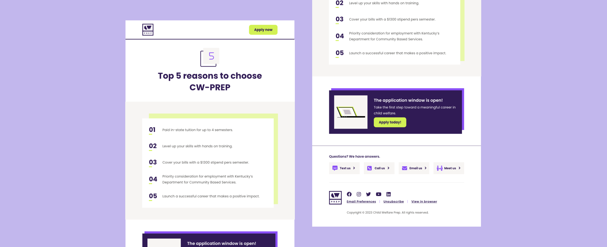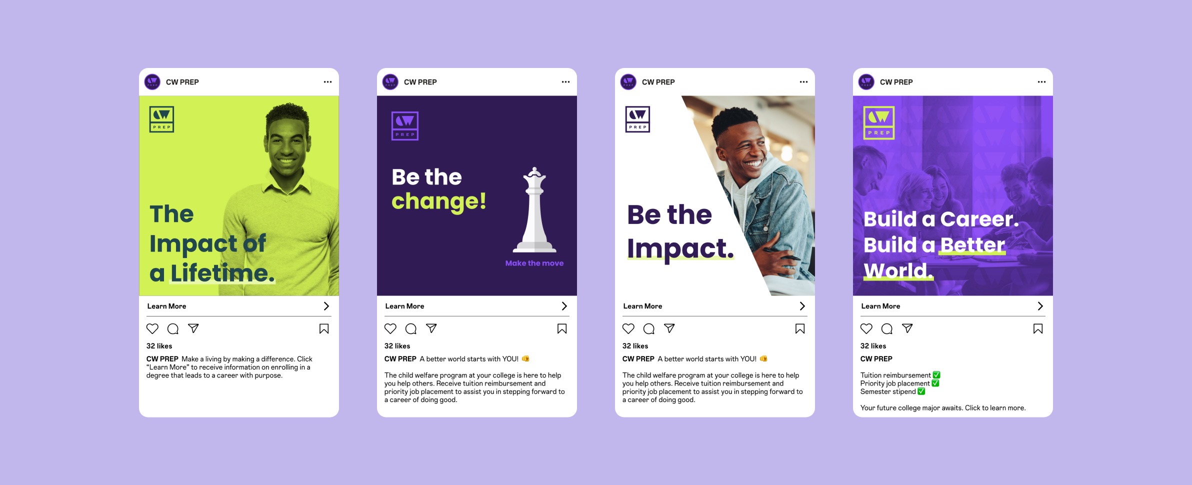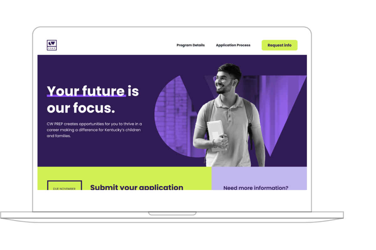 CW PREP is a Kentucky-based program created to support college students studying to become child welfare workers. They were looking for support to create a unique and youthful brand identity as well as a user-friendly multi channel experience.