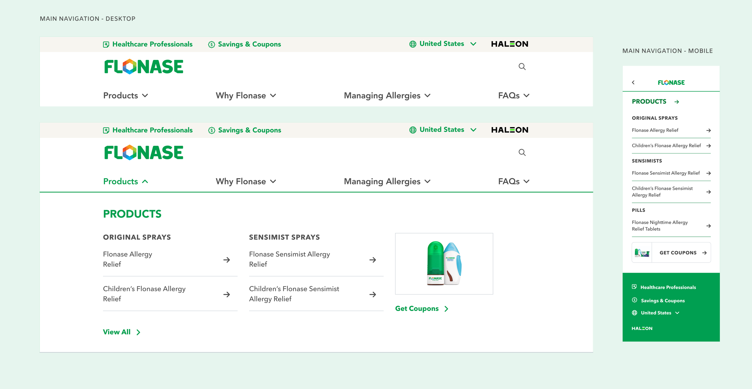 Flonase partnered with us in order to refresh their digital presence using their new visual brand language and to create a more intuitive journey for the user. This was to be executed with a full website redesign including – execution of a new design system, responsive designs, optimized content strategy and a refreshed site taxonomy.